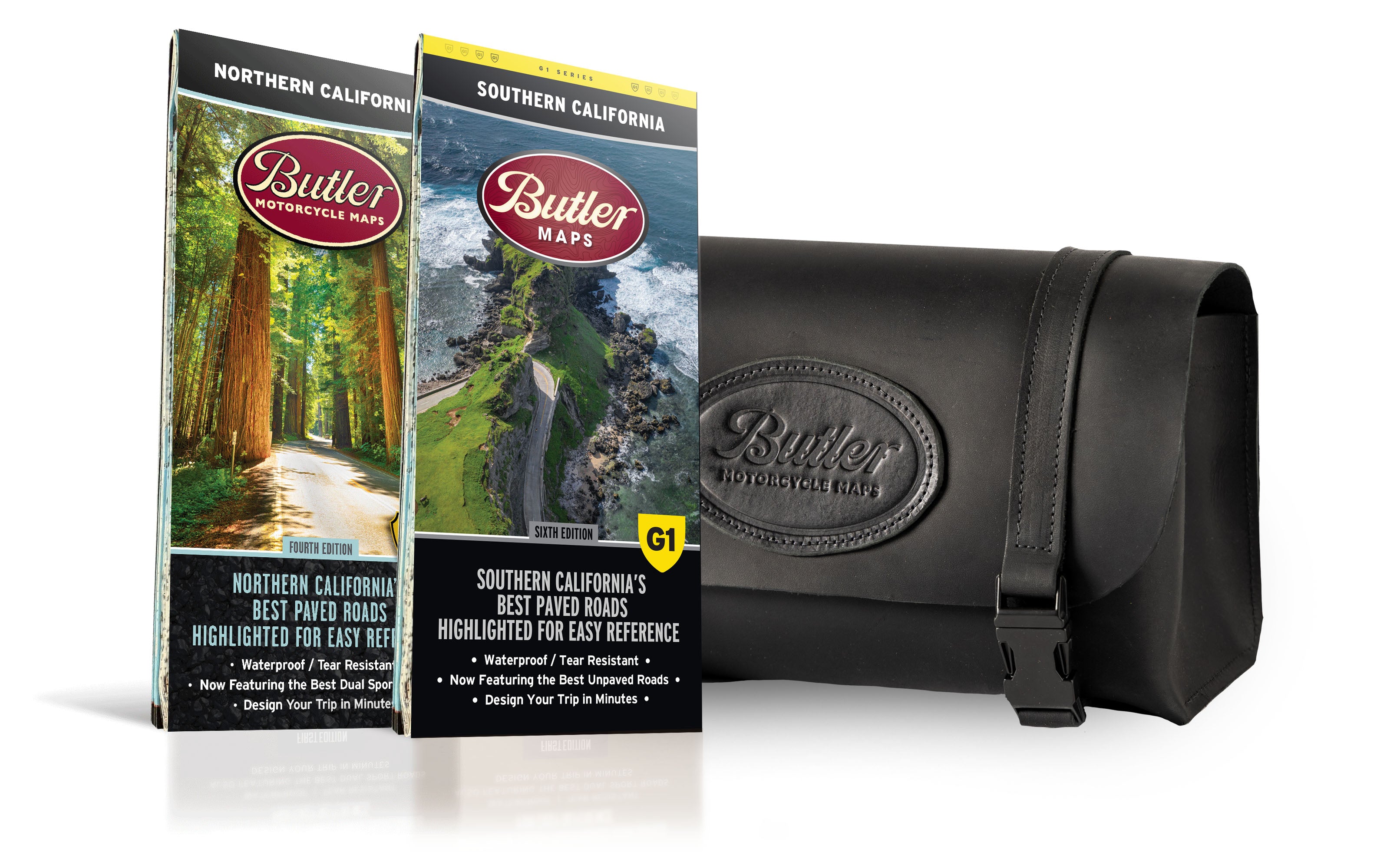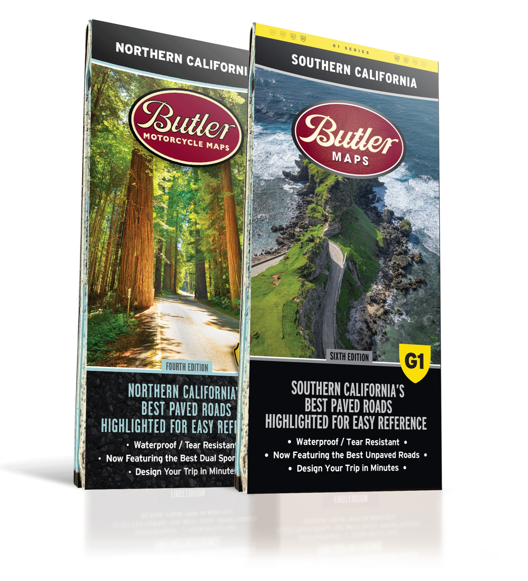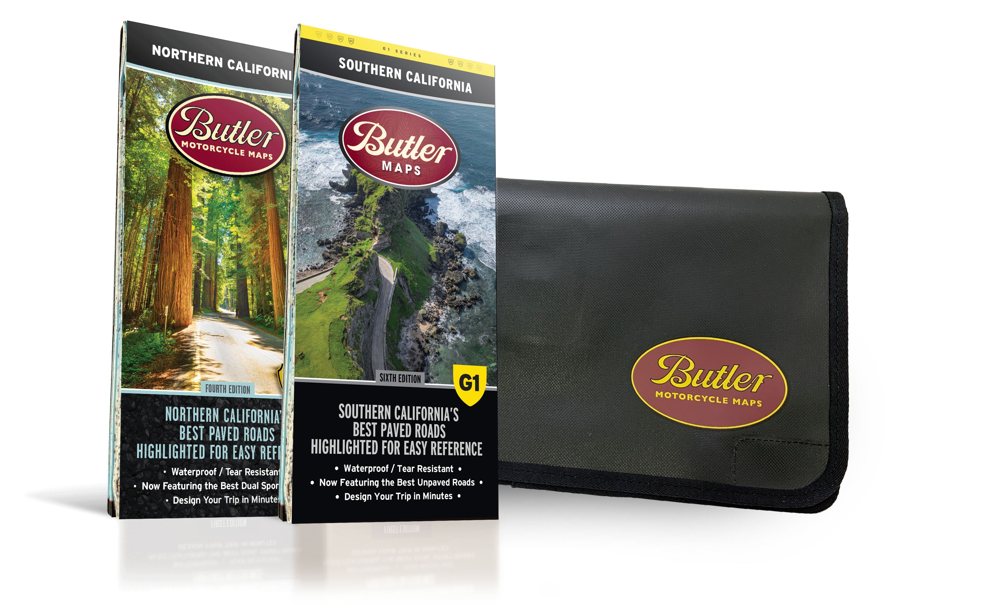 The Golden State has a land area of over 156,000 square miles. That’s a big piece of land! So big as a matter of fact, that we had to break it up into two separate G1-Series maps. Southern and south central California, which covers all the best rides up to Bishop in the east and Watsonville in the west and northern California which showcases these amazing roads from there up to the Oregon border. The Butler Maps team rode over 95,000 miles in the course of three years to bring this collection to fruition.