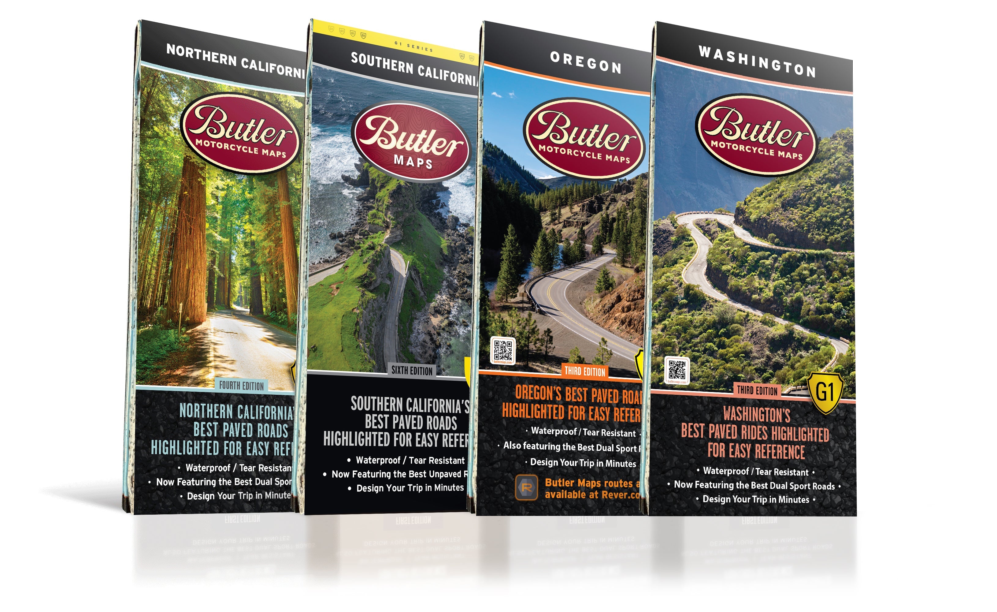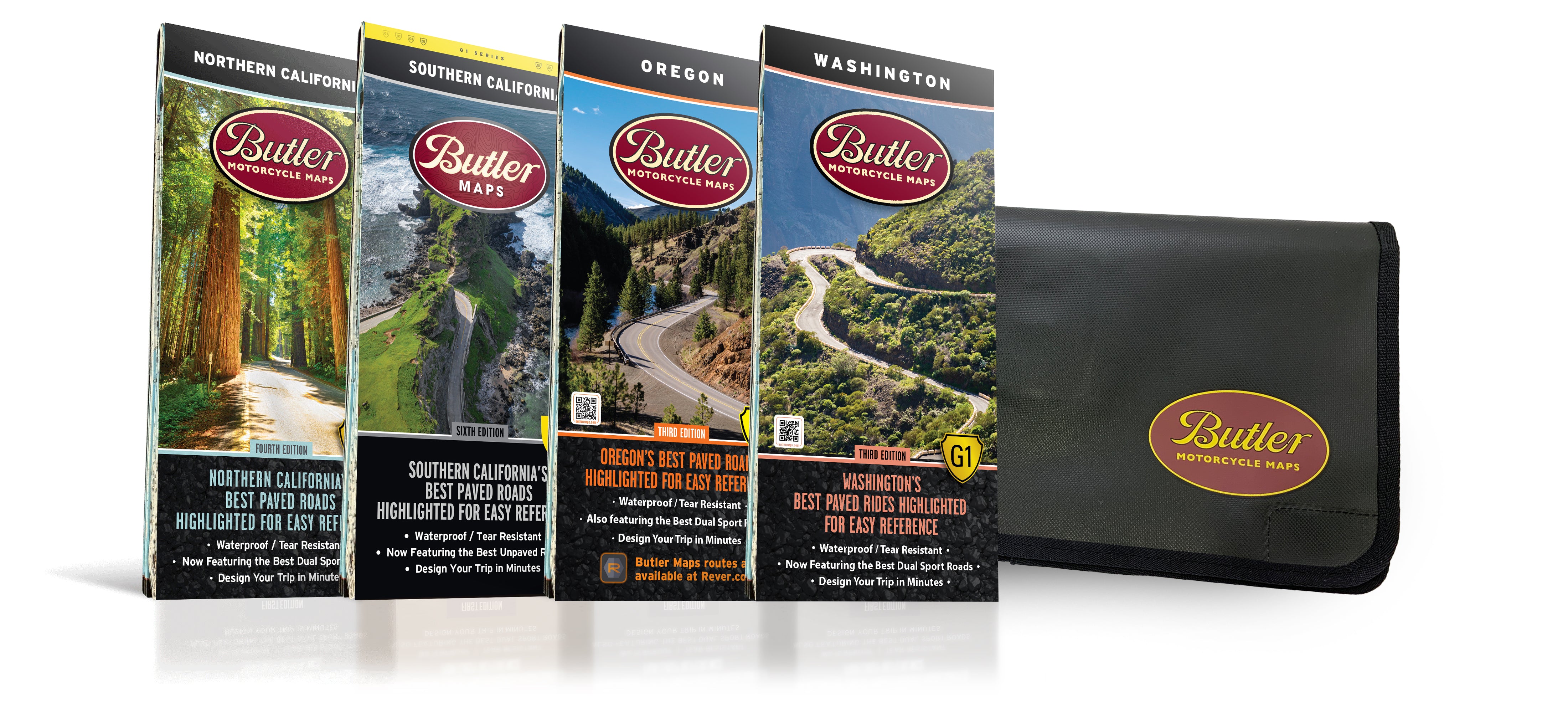 If your goal is to tire out a few bikes for years on end on only the best, most twisty and scenic rides along within the Golden State (California) and Pacific Northwest (Oregon and Washington), you’ve come to the right place. The Butler Maps team spent over five years and 135,000 miles of concentrated riding to bring this resource to you. Death Valley, check. Joshua Tree, Sequoia, Kings Canyon, Lassen, Pinnacles, Redwoods, Yosemite National Parks–we got ‘em. We also have all the best roads, paved and dirt, in between.