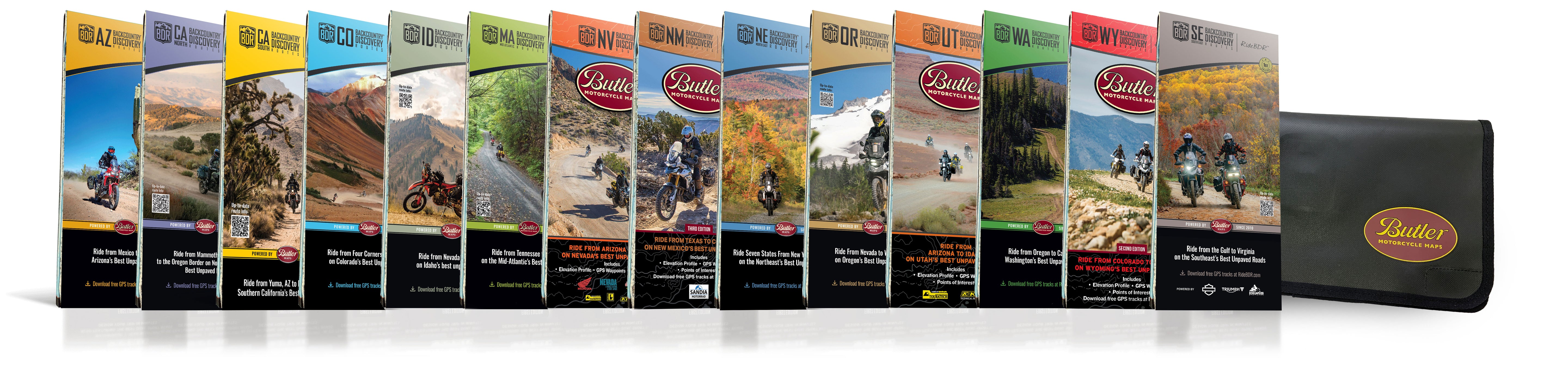 Get every Backcountry Discovery Route Map available along with a custom Mosko Moto map case.