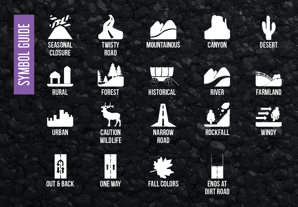 - Detailed Information | Includes written descriptions, points of interest, terrain icons, and elevation profiles of the best roads.